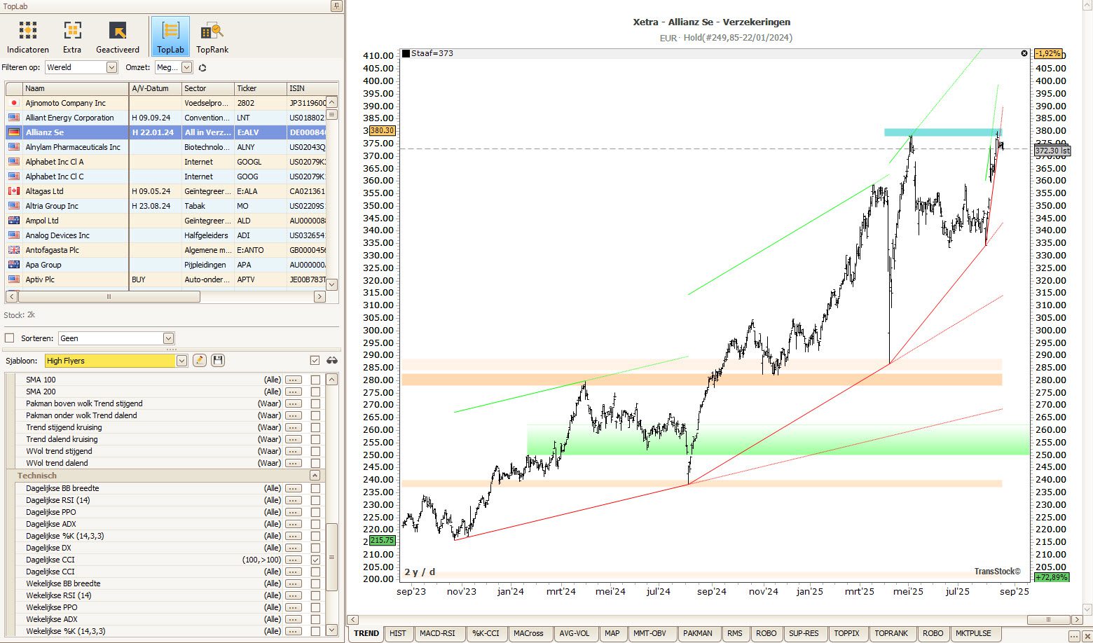 • Naadloze koppeling: één klik naar TransStock-grafieken, watchlists en scans.