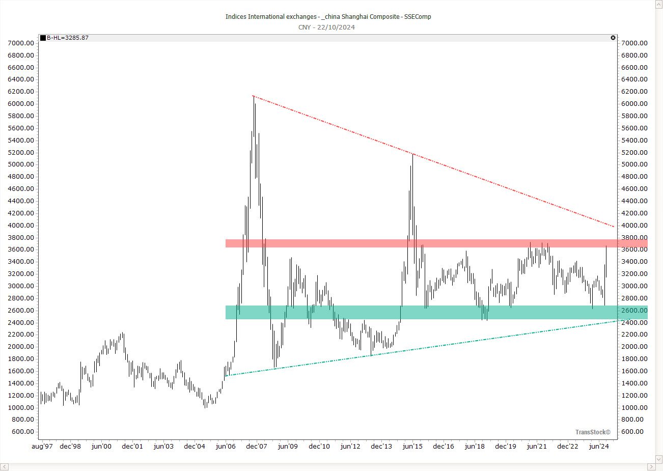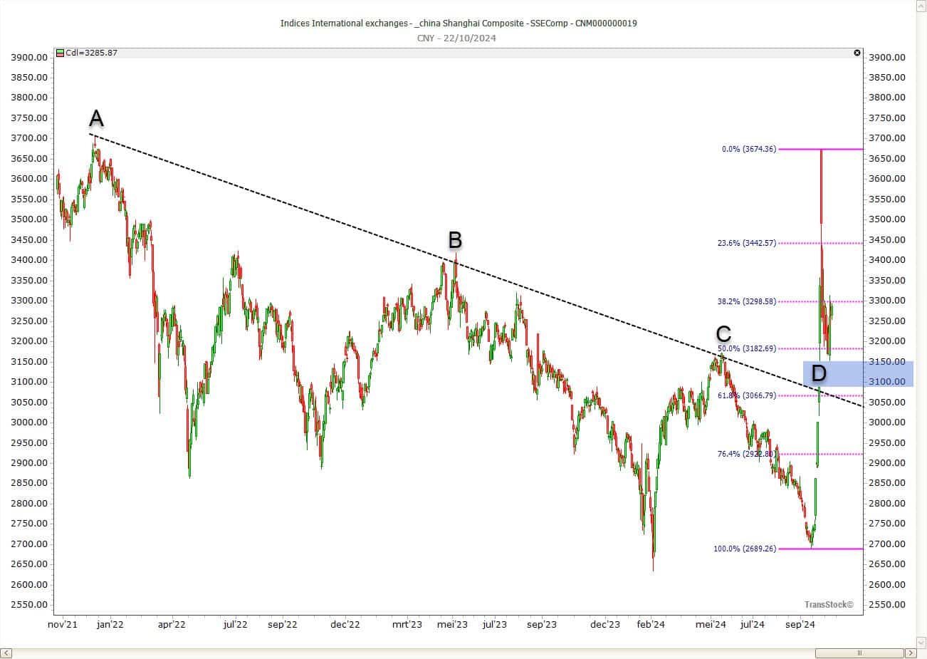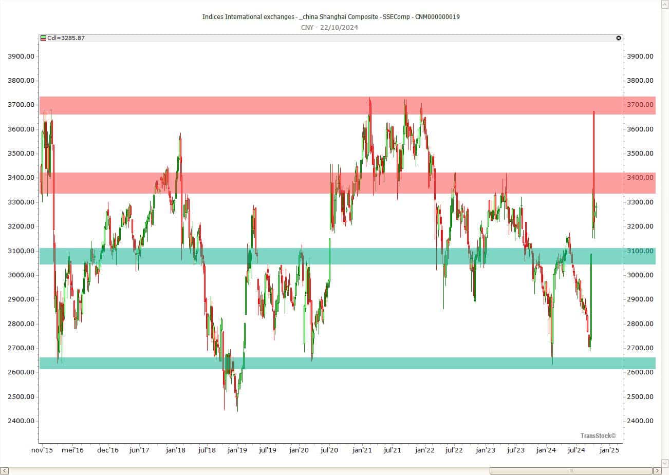 Na een consolidatiefase en stimulerende maatregelen voor de Chinese economie, beweegt de Chinese beurs (Chinese Composite Index) weer omhoog.