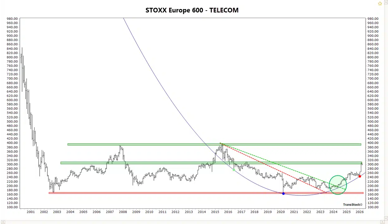 Telecom aandelen vallen op omdat de sector beter presteert dan een groot deel van de brede Europese markt. Die relatieve sterkte wijst erop dat kapitaal zich opnieuw richting telecom beweegt.