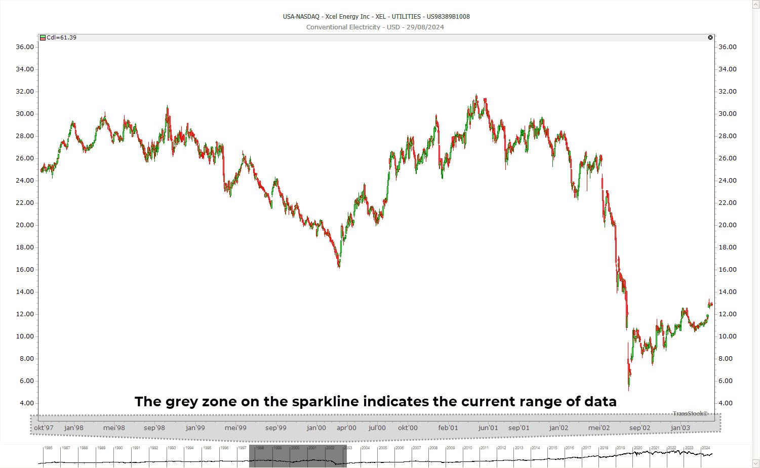 TransStock: dynamische schuifbalk met sparkline en verplaatsbare grijze selectiezone