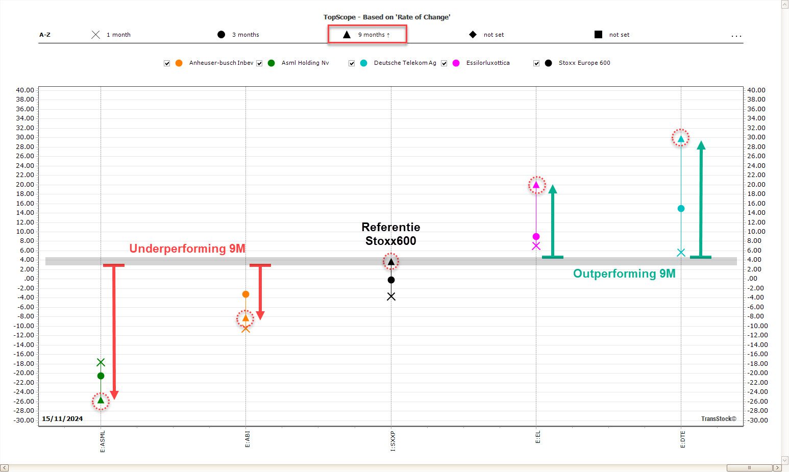 Wilt u sneller tot een shortlist komen? TopScope in TransStock rangschikt aandelen op o.a. trend, momentum en volume. Zo ziet u in seconden welke tickers de moeite waard zijn — en welke niet.